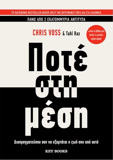 Σε αυτό το πολύτιμο βιβλίο ο Chris Voss μάς προσφέρει αρχές, γνώσεις και τεχνικές που απαιτούνται ώστε να αντεπεξέλθουμε σε κάθε είδους διαπραγματευτική πρόκληση, χωρίς ποτέ να χρειαστεί να τα βρούμε στη μέση.